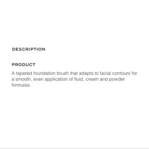 -A tapered foundation brush that adapts to facial contours for a smooth, even application of fluid, cream and powder formulas.