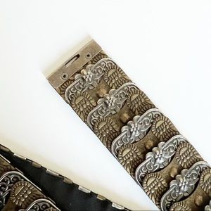 Western boho Antique Silver Bronze Metal Beaded Rhinestone Buckle Elastic Band Belt 31 - cowgirl cowboy rodeo southwestern edgy moody grunge punk biker skater metal elastic stretch unbranded festival concert vintage