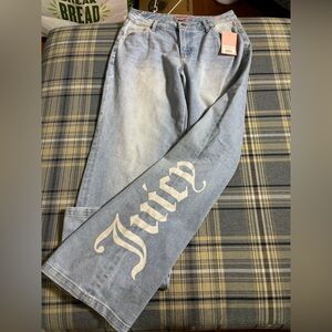 Juicy Couture jeans, Y2K denim, wide leg jeans, light wash jeans, size 27 Juicy, logo jeans, new with tags, vintage style, trendy denim, Juicy Couture Poshmark