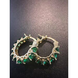 These gold hoop earrings are a timeless accessory that seamlessly complements any outfit. The emerald-green stones add a touch of sophistication and elegance. They are crafted to be lightweight, ensuring comfort throughout wear, and feature a secure clasp for peace of mind. Elevate your style with this exquisite pair.