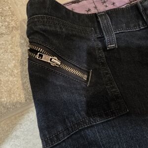 Stylish dark denim mini skirt with front zipper pockets. Perfect for casual outings.