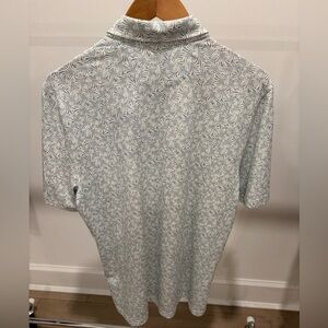 Stylish Faherty polo with a green leaf design on white. Perfect for casual wear.