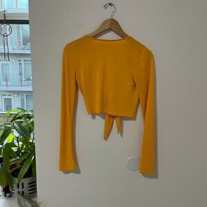 Urban Outfitters Yellow Tie Cutout Crop Top Size Medium. Excellent condition, like new. Cutout detail at chest with cute tie detail. Long Sleeve. Super soft!