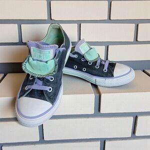 Converse All Star Double Tongue Jr Size 2 Black Teal Low Tops Sneakers