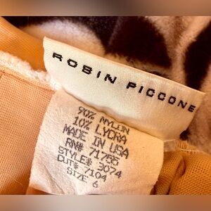 ROBIN PICCONE Sz 6 Nude Illusion White Terrycloth Lace & Tan Swimsuit / Bodysuit