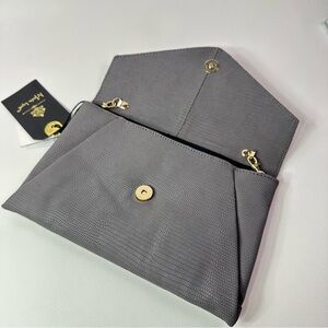 WOMEN’S NEW MODA LUXE LEATHER CARA CROSSBODY CLUTCH BAG GREY