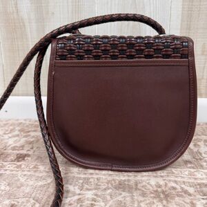 Vtg Brighton Weaved Brown Leather Crossbody Shoulder Purse Quiet Luxury Classic