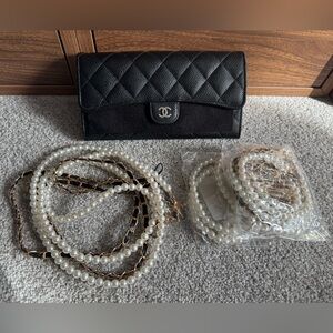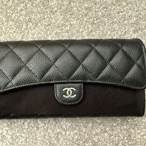 Brand New Chanel Black Quilted Wallet with Silver Logo