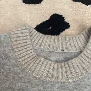 Luxurious cashmere sweater. Features elegant gray and black design. Excellent preowned condition and beautiful stripes of beige white, black and gray. The tag at the neck is missing but the tag inside is there. It is 100% cashmere and is a size medium meant for a slightly oversized fit.