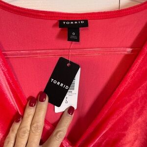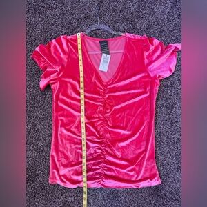 Torrid Hot Pink Velvet Ruched Short Sleeved Top, Size 0 (L/12) V Neck