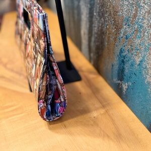 Unique Design: Eye-catching, glossy patent faux-leather exterior with a vibrant, double-sided magazine cover collage print.