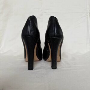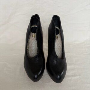 Matiko Betty Black Leather Elevated Side Slip On Peep Toe Bootie Pump Size 7