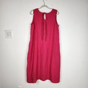 Embrace effortless summer style with this vibrant Chico's Pink Linen Midi Dress. Crafted from breathable 100% linen, this dress features exquisite tonal embroidery, beaded tassels, and a relaxed A-line silhouette that perfectly captures the "Coastal Boho" and "Lagenlook" aesthetics. The addition of functional pockets makes it as practical as it is chic.