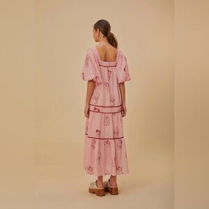 Farm Rio The Kiss Embroidered Short Sleeve Maxi Dress