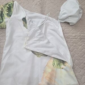 - Beautiful and unique dress with one-puff sleeve, one puff off-shoulder sleeve, and one shoulder strap