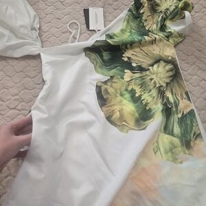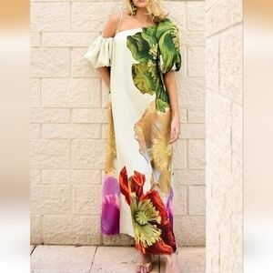 UOOZEE White Floral Flowy Beach Vacation Maxi Dress with Puff Sleeves - NWT