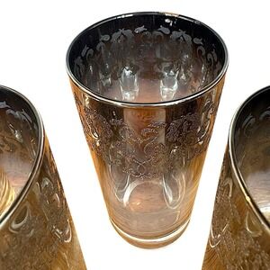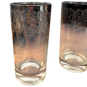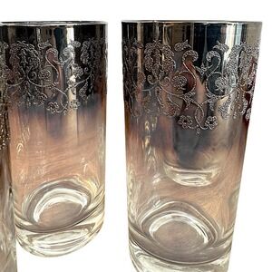 MCM Dorothy Thorpe Style Highball Glasses Silver Fade Filigree Barware 6 Pc Set