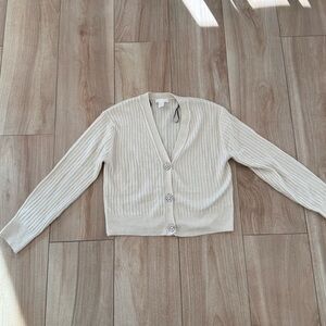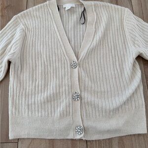 H&M Cream V-Neck Bejeweled Button-Up Cardigan SIZE SMALL