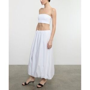ENZA COSTA Poplin Bubble Skirt Womens Small White Maxi Quiet Luxury Resort NEW