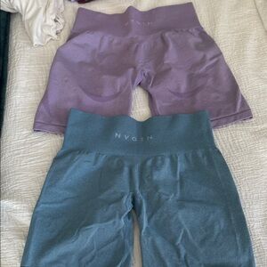 Chic NVGTN high-waisted shorts in lavender and teal. Ideal for gym or casual outings.