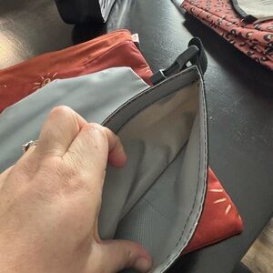 This vibrant travel bag set for includes a variety of colorful designs, perfect for organizing essentials on the go. The set features a playful mix of colors, making it both fun and functional. All my airplane 💩 small canvas zip up pouch. Orange with sunshine is lined for any wet swimsuits or items, two zipper pockets and an outer snap to easily attach to any other bags. Gray is also a “wet bag” for swimsuits, etc. Cheetah print is insulated and expands nicely. “STUFF” bag, also a nice bigger zipper bag for any travel, makeup, hair, snack, all your stuff 😎 Bundle and save with any listings, thanks for looking.