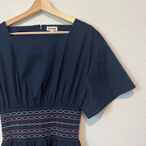 Staud Amy Poplin Mini Dress Navy Cotton Poplin Fit And Flare Women’s Medium
