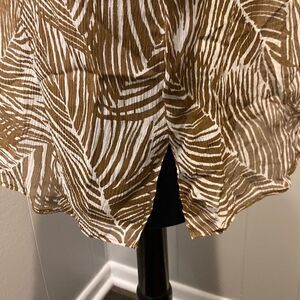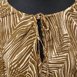 Talbots Blouse Medium Brown White Leaf Silk Drawstring Tie Sleeve Sheet Slit Hem