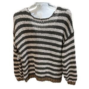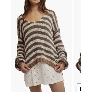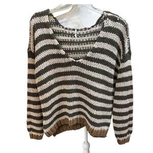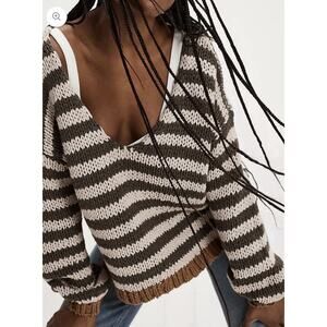 Free People Portland Striped V-Neck handknit chunky Sweater Brown 2375