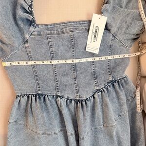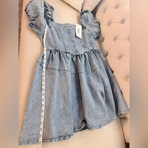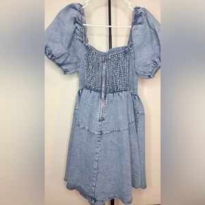 Chic denim dress with stylish puff sleeves. Perfect for any casual outing.
