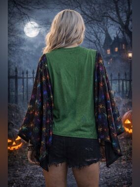 Custom Upcycled Nightmare Before Christmas Kimono Poncho Spider Web Sleeves Top