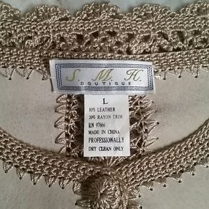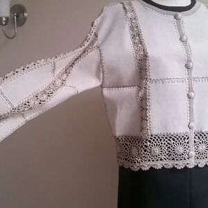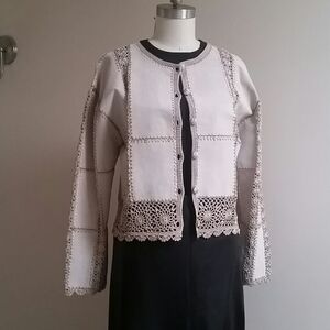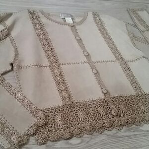 Vintage Patchwork Leather & Crochet Jacket Oatmeal Color M/L