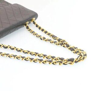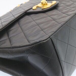 CHANEL Big Matelasse34 Turn Lock Chain Bag Lamb Skin Black Gold CC Auth ar5950AV