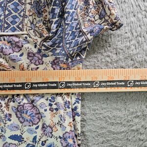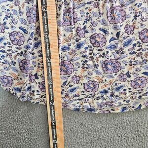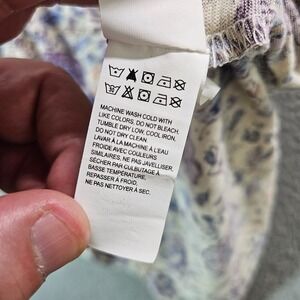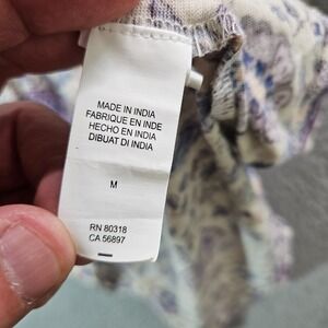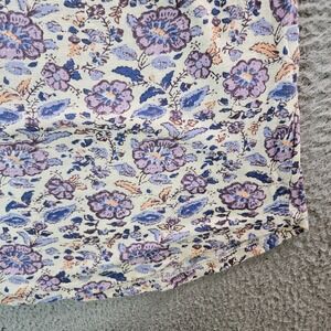 Lucky Brand Tee Top Women Medium Tie Neck Stretch Floral Purple Navy
