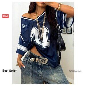Brand new with tags and in flawless condition — this stylish jersey shirt delivers a bold, oversized Y2K streetwear look perfect for casual days, sporting events, or a trendy night out. The fit is comfortable, breathable, and effortlessly cool.