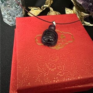 Amethyst turtle mini carving on purple wire choker with silver hardware