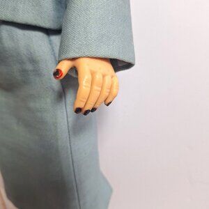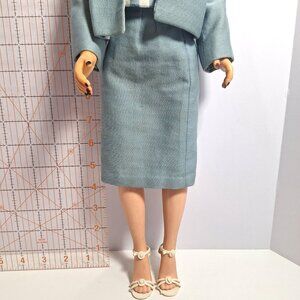 She has a few clothes creases and her hair is a bit flat in the back from being in stored in a tote for awhile.