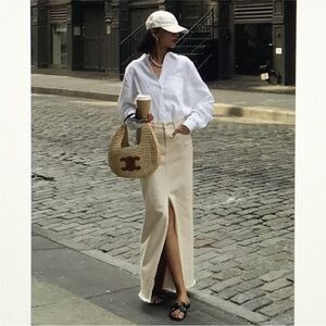 Still Here Panama Jean Denim Midi Skirt in Cream size 27 EUC