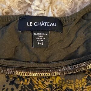 Le Chateau Olive and Burgundy Paisley Short Sleeve Top