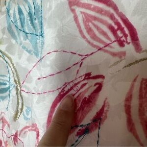 • Condition: In excellent, pre-owned condition with minimal signs of wear. Loose thread on floral embroidery on pink leaf design near center. See photos.