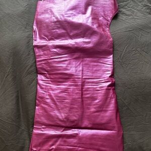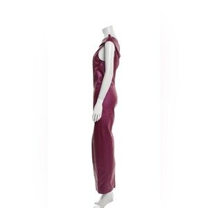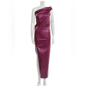 The Rick Owens RP01C5520-SLQ is the Athena Gown in the vibrant, bright pink "Fuchsia" colorway from the Spring/Summer 2023 (EDFU) collection. It is a striking one-shoulder maxi dress known for its unique coated, ruched texture