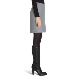 White House Black Market chic mini skirt in gray. It’s so soft and comfortable to wear. I only wore it a couple of times because it’s not quite the right fit for me. It’s in like new condition. Measurements below.