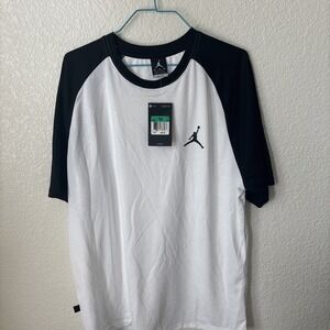 The Jordan Men's Dri-FIT Long short sleeve Team Training Shirt in white and black is a versatile activewear top suitable for all seasons. Made from 100% polyester, this shirt provides comfort and breathability during workouts. With a pullover closure and short sleeves, it is easy to wear and ideal for men looking for a high-quality training shirt that combines style and functionality. Perfect for any occasion where activewear is needed, this Team Training Shirt is a great addition to any man's wardrobe.