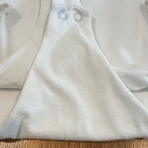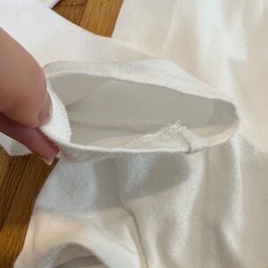 nuuds | Women’s white versatile bodysuit. Long sleeves with a smooth finish. Ideal for layering or standalone wear. Some stain/material piling in armpit area (pictured), some material piling on bodysuit, and a stain on the inside of front collar (pictured). Good used condition.