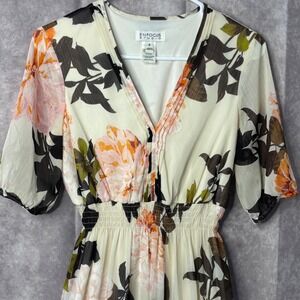 ENFOCU STUDIO Size 4 Floral Maxi Dress V Neck Waist Flutter Sleeve Cream