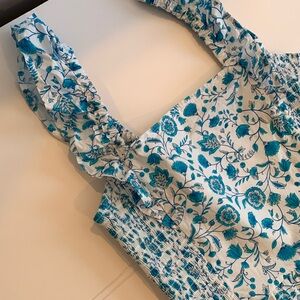 Draper James Women’s Large White Blue Floral Ruffle Sleeveless Dress Sundress
