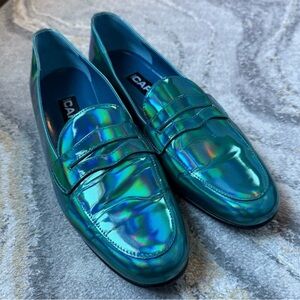 Carel Paris Iridescent Holographic Patent Leather Penny Loafers 39 NEW NWOB