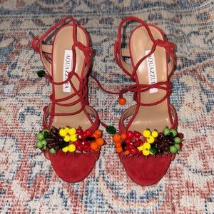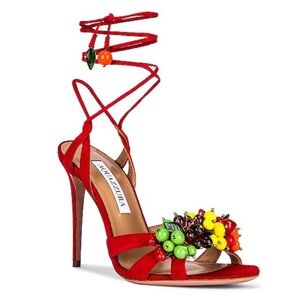 Aquazzura Tutti Frutti Sandal 105 in Suede Lipstick SZ 36 NIB