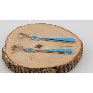 Zuni Dangle Earrings Signed Genuine Native Amer Jewelry Turquoise ***
