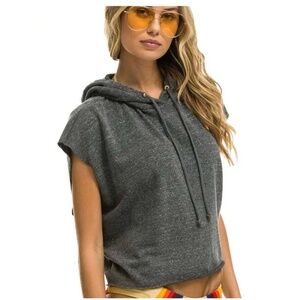 Aviator Nation Logo Embroidery Sleeveless Relaxed Cropped Pullover Hoodie- Grey