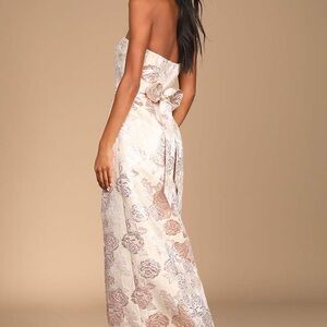 Lulu's Pale Pink Jacquard Floral Strapless Dress